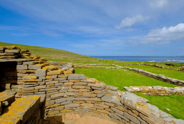 On the island, you’ll find the remains of a Pictish broch (a large, round stone tower) that dates back to the Iron Age, around 2,000 years ago, as well as later structures associated with Viking settlers. The site is relatively well-preserved, with sections of the broch still standing and walls of other buildings still intact. This makes the Brough of Gurness one of the most important sites for understanding both Pictish and Viking settlements in Orkney.