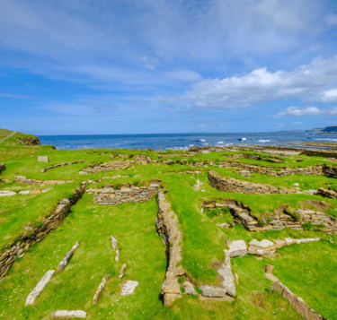 The Brough of Gurness is another fascinating archaeological site located on the Orkney Mainland, off the northern coast of the island. It is a well-preserved example of a Pictish and Viking settlement and provides valuable insights into the complex history of the region, showcasing the overlapping cultures and influences that shaped Orkney’s past. Like many other prehistoric and early historical sites on Orkney, the Brough of Gurness is a testament to the island’s strategic importance in the North Sea and its role as a center for trade, culture, and conflict throughout the ages.
