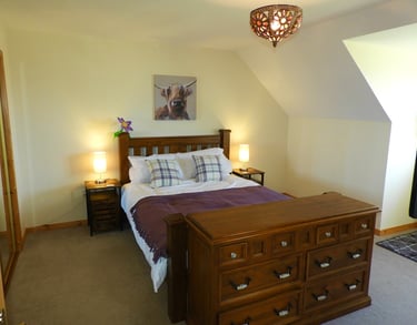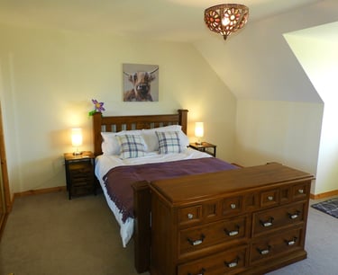 Relax in the Ragnar Room, featuring cozy decor, a comfortable double bed, and a private bathroom just steps away, ideal for a peaceful and comfortable countryside retreat.